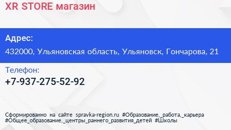 XR STORE, магазин по адресу 432000, Ульяновская область, Ульяновск, Гончарова, 21 в дальнейшем Организация, размещена в следующих категориях: