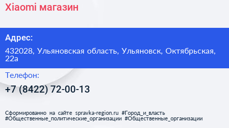 Xiaomi, магазин по адресу 432028, Ульяновская область, Ульяновск, Октябрьская, 22а в дальнейшем Организация, размещена в следующих категориях: