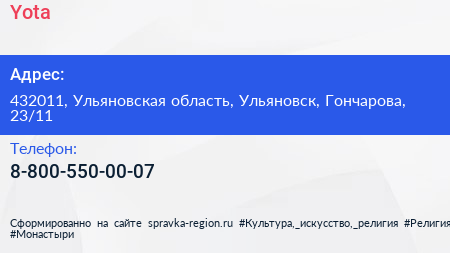Yota по адресу 432011, Ульяновская область, Ульяновск, Гончарова, 23/11 в дальнейшем Организация, размещена в следующих категориях: