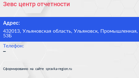 Зевс, центр отчетности по адресу 432013, Ульяновская область, Ульяновск, Промышленная, 53Б в дальнейшем Организация, размещена в следующих категориях: