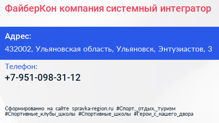 ФайберКон, компания системный интегратор по адресу 432002, Ульяновская область, Ульяновск, Энтузиастов, 3 в дальнейшем Организация, размещена в следующих категориях: