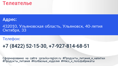Телеателье по адресу 432010, Ульяновская область, Ульяновск, 40-летия Октября, 33 в дальнейшем Организация, размещена в следующих категориях: