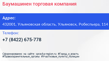 Баумашинен, торговая компания по адресу 432001, Ульяновская область, Ульяновск, Робеспьера, 114 в дальнейшем Организация, размещена в следующих категориях: