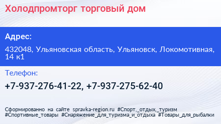 Холодпромторг, торговый дом по адресу 432048, Ульяновская область, Ульяновск, Локомотивная, 14 к1 в дальнейшем Организация, размещена в следующих категориях: