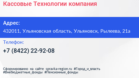 Кассовые Технологии, компания по адресу 432011, Ульяновская область, Ульяновск, Рылеева, 21а в дальнейшем Организация, размещена в следующих категориях: