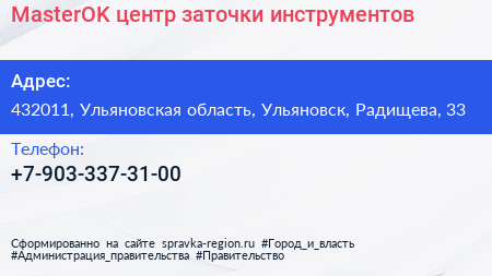 MasterOK, центр заточки инструментов по адресу 432011, Ульяновская область, Ульяновск, Радищева, 33 в дальнейшем Организация, размещена в следующих категориях: