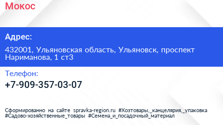Мокос по адресу 432001, Ульяновская область, Ульяновск, проспект Нариманова, 1 ст3 в дальнейшем Организация, размещена в следующих категориях: