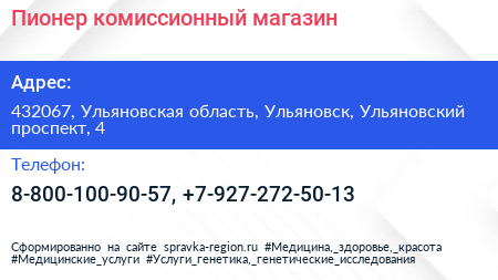 Пионер, комиссионный магазин по адресу 432067, Ульяновская область, Ульяновск, Ульяновский проспект, 4 в дальнейшем Организация, размещена в следующих категориях: