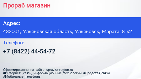 Прораб, магазин по адресу 432001, Ульяновская область, Ульяновск, Марата, 8 к2 в дальнейшем Организация, размещена в следующих категориях: