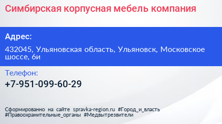 Симбирская корпусная мебель, компания по адресу 432045, Ульяновская область, Ульяновск, Московское шоссе, 6и в дальнейшем Организация, размещена в следующих категориях: