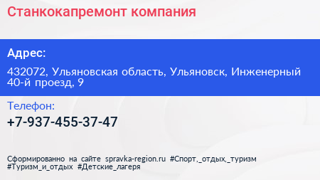 Станкокапремонт, компания по адресу 432072, Ульяновская область, Ульяновск, Инженерный 40-й проезд, 9 в дальнейшем Организация, размещена в следующих категориях: