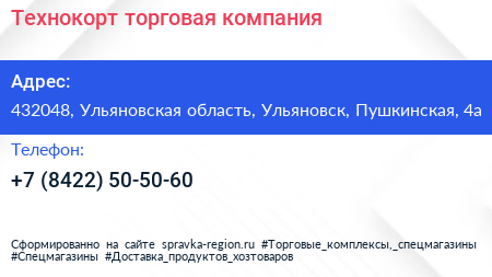 Технокорт, торговая компания по адресу 432048, Ульяновская область, Ульяновск, Пушкинская, 4а в дальнейшем Организация, размещена в следующих категориях: