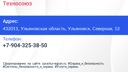 Техносоюз по адресу 432011, Ульяновская область, Ульяновск, Северная, 12 в дальнейшем Организация, размещена в следующих категориях: