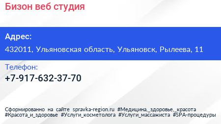 Бизон, веб-студия по адресу 432011, Ульяновская область, Ульяновск, Рылеева, 11 в дальнейшем Организация, размещена в следующих категориях: