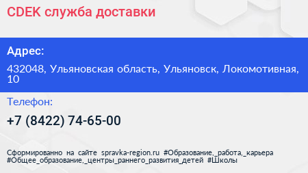 CDEK, служба доставки по адресу 432048, Ульяновская область, Ульяновск, Локомотивная, 10 в дальнейшем Организация, размещена в следующих категориях: