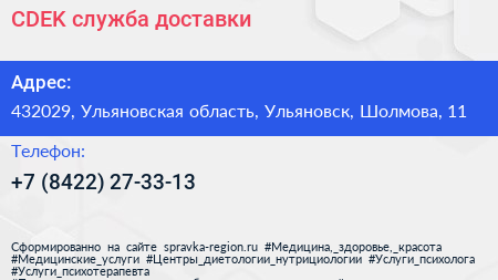 CDEK, служба доставки по адресу 432029, Ульяновская область, Ульяновск, Шолмова, 11 в дальнейшем Организация, размещена в следующих категориях: