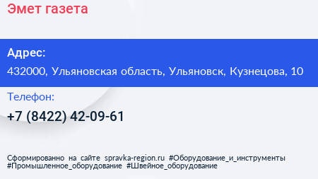 Эмет, газета по адресу 432000, Ульяновская область, Ульяновск, Кузнецова, 10 в дальнейшем Организация, размещена в следующих категориях: