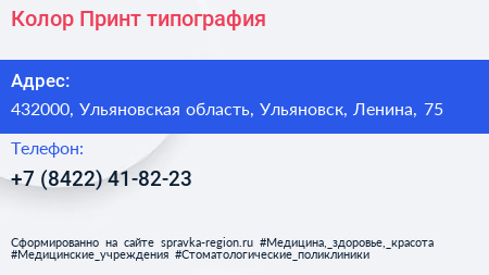 Колор-Принт, типография по адресу 432000, Ульяновская область, Ульяновск, Ленина, 75 в дальнейшем Организация, размещена в следующих категориях: