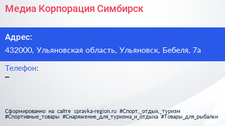 Медиа Корпорация Симбирск по адресу 432000, Ульяновская область, Ульяновск, Бебеля, 7а в дальнейшем Организация, размещена в следующих категориях:
