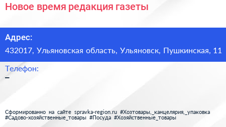 Новое время, редакция газеты по адресу 432017, Ульяновская область, Ульяновск, Пушкинская, 11 в дальнейшем Организация, размещена в следующих категориях: