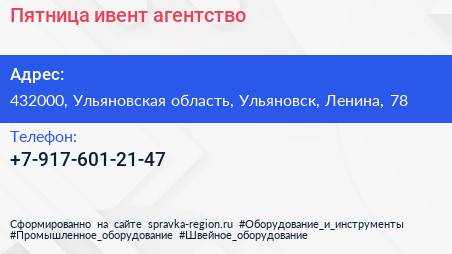 Пятница, ивент-агентство по адресу 432000, Ульяновская область, Ульяновск, Ленина, 78 в дальнейшем Организация, размещена в следующих категориях: