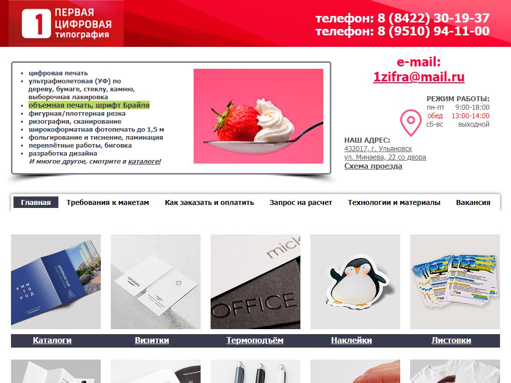 Первая цифровая типография по адресу 432017, Ульяновская область, Ульяновск, Минаева, 22 в дальнейшем Организация, размещена в следующих категориях: