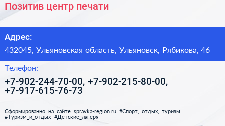 Позитив, центр печати по адресу 432045, Ульяновская область, Ульяновск, Рябикова, 46 в дальнейшем Организация, размещена в следующих категориях: