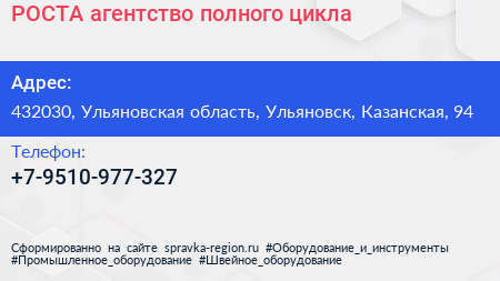 РОСТА, агентство полного цикла по адресу 432030, Ульяновская область, Ульяновск, Казанская, 94 в дальнейшем Организация, размещена в следующих категориях: