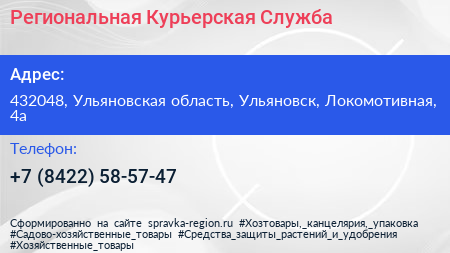 Региональная Курьерская Служба по адресу 432048, Ульяновская область, Ульяновск, Локомотивная, 4а в дальнейшем Организация, размещена в следующих категориях: