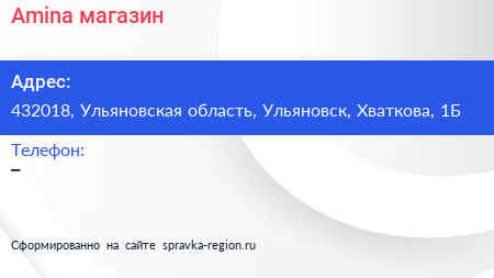 Amina, магазин по адресу 432018, Ульяновская область, Ульяновск, Хваткова, 1Б в дальнейшем Организация, размещена в следующих категориях: