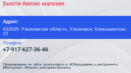 Бьюти Авеню, магазин по адресу 432029, Ульяновская область, Ульяновск, Камышинская, 21 в дальнейшем Организация, размещена в следующих категориях: