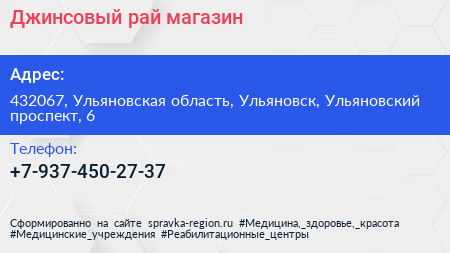 Джинсовый рай, магазин по адресу 432067, Ульяновская область, Ульяновск, Ульяновский проспект, 6 в дальнейшем Организация, размещена в следующих категориях: