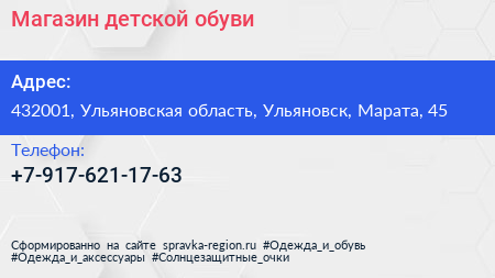 Магазин детской обуви по адресу 432001, Ульяновская область, Ульяновск, Марата, 45 в дальнейшем Организация, размещена в следующих категориях: