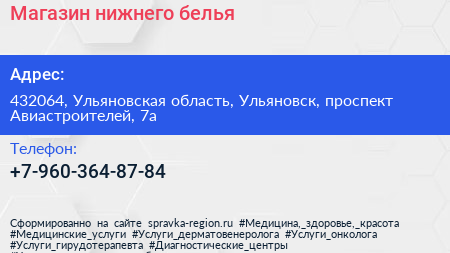 Магазин нижнего белья по адресу 432064, Ульяновская область, Ульяновск, проспект Авиастроителей, 7а в дальнейшем Организация, размещена в следующих категориях:
