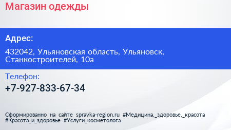 Магазин одежды по адресу 432042, Ульяновская область, Ульяновск, Станкостроителей, 10а в дальнейшем Организация, размещена в следующих категориях: