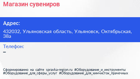 Магазин сувениров по адресу 432032, Ульяновская область, Ульяновск, Октябрьская, 38а в дальнейшем Организация, размещена в следующих категориях: