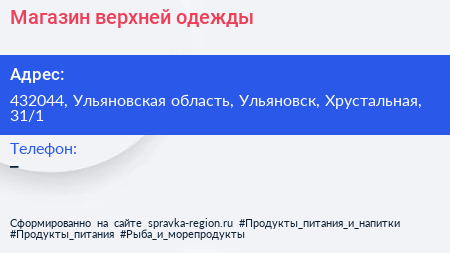 Магазин верхней одежды по адресу 432044, Ульяновская область, Ульяновск, Хрустальная, 31/1 в дальнейшем Организация, размещена в следующих категориях: