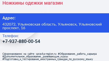 Ножкины одежки, магазин по адресу 432072, Ульяновская область, Ульяновск, Ульяновский проспект, 16 в дальнейшем Организация, размещена в следующих категориях: