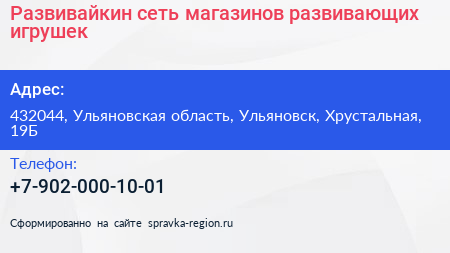 Развивайкин, сеть магазинов развивающих игрушек по адресу 432044, Ульяновская область, Ульяновск, Хрустальная, 19Б в дальнейшем Организация, размещена в следующих категориях: