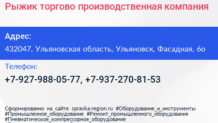 Рыжик, торгово-производственная компания по адресу 432047, Ульяновская область, Ульяновск, Фасадная, 6о в дальнейшем Организация, размещена в следующих категориях:
