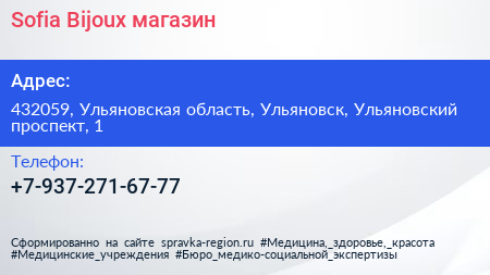 Sofia Bijoux, магазин по адресу 432059, Ульяновская область, Ульяновск, Ульяновский проспект, 1 в дальнейшем Организация, размещена в следующих категориях: