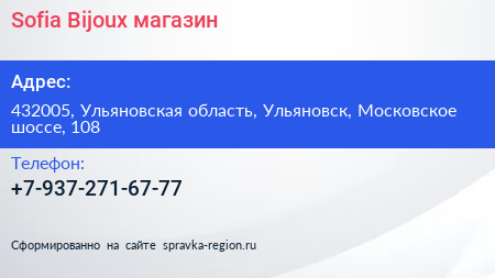 Sofia Bijoux, магазин по адресу 432005, Ульяновская область, Ульяновск, Московское шоссе, 108 в дальнейшем Организация, размещена в следующих категориях: