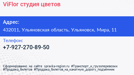 ViFlor, студия цветов по адресу 432011, Ульяновская область, Ульяновск, Мира, 11 в дальнейшем Организация, размещена в следующих категориях: