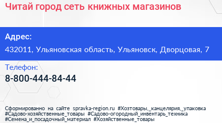 Читай-город, сеть книжных магазинов по адресу 432011, Ульяновская область, Ульяновск, Дворцовая, 7 в дальнейшем Организация, размещена в следующих категориях: