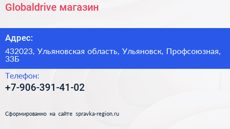 Globaldrive, магазин по адресу 432023, Ульяновская область, Ульяновск, Профсоюзная, 33Б в дальнейшем Организация, размещена в следующих категориях: