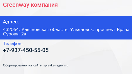 Greenway, компания по адресу 432064, Ульяновская область, Ульяновск, проспект Врача Сурова, 2а в дальнейшем Организация, размещена в следующих категориях:
