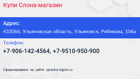Купи Слона, магазин по адресу 432066, Ульяновская область, Ульяновск, Рябикова, 106а в дальнейшем Организация, размещена в следующих категориях:
