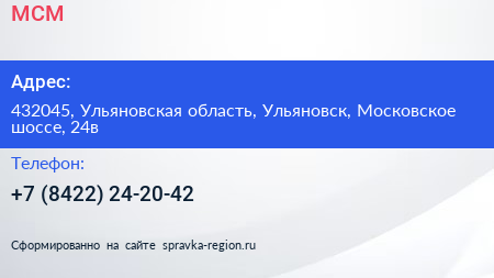 МСМ по адресу 432045, Ульяновская область, Ульяновск, Московское шоссе, 24в в дальнейшем Организация, размещена в следующих категориях: