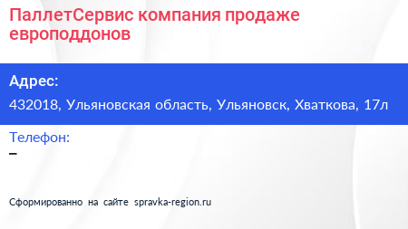 ПаллетСервис, компания продаже европоддонов по адресу 432018, Ульяновская область, Ульяновск, Хваткова, 17л в дальнейшем Организация, размещена в следующих категориях: