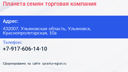 Планета семян, торговая компания по адресу 432007, Ульяновская область, Ульяновск, Краснопролетарская, 10а в дальнейшем Организация, размещена в следующих категориях: